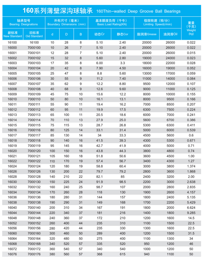 16020薄壁深溝球軸承
